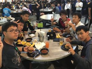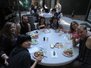 良く動いた後は、夕食です。ケイタリングサービスによるもので、外でバーベキューチキンを頂きました。