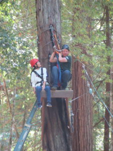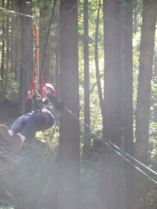 ハーネス型の安全帯を身体につけ、そのハーネスにしっかりした数本のワイヤーで繋がれた状態でジップラインを行います。このワイヤーは軽自動車の荷重にも耐えられるものです。