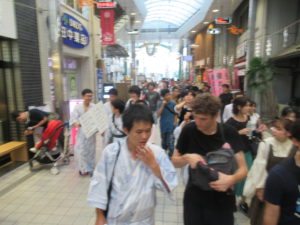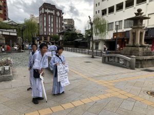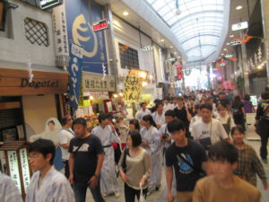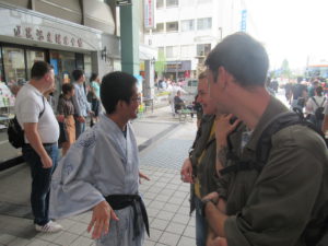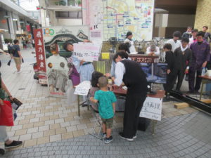 午前10時,早速呼び込み開始です。観光客に直接の呼び込みを行いました。