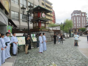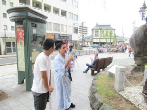 本校高校生の中で,英語・フランス語・韓国語・中国語・ドイツ語が堪能な生徒たちを中心として,道後に来られる観光客の方々にそれぞれの言語で観光案内を行う企画が9月22日(日)にようやく実現しました。これは高校Ⅱ年生を中心としたメンバーが企画し,観光協会の方や,本校OBの方々のご協力を得て国際交流委員会で行った催しです。生徒たちが自主的に運営したもので,海外帰国子女や語学に堪能な生徒たち,またこの企画に自主的に参加した高校生約20名が,道後の街を国内・国外の方々にご案内しました。その様子をお伝えします。