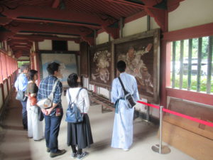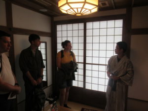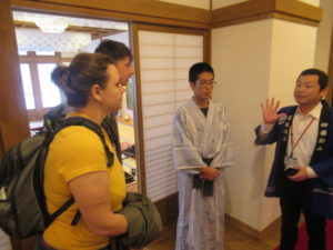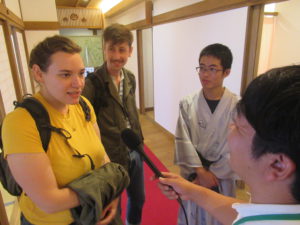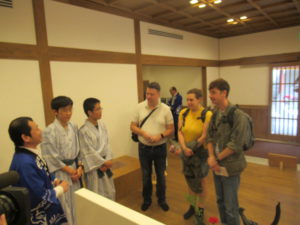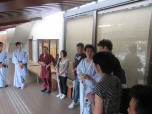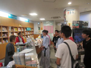 館の方々にご協力頂き,中までご案内いただけることとなりました。こちらができた経緯や,中の施設,また展示品に至るまで詳細に説明していただき,それを生徒が翻訳するという流れでご案内しました。
