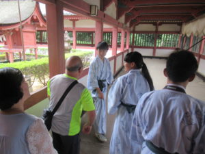 神社の建物から中にある所蔵品について語っています。時代は様々ですが、生徒たちは良く調べた上で紹介していました。こちらは国姓爺合戦(和藤内)についての所蔵品です。