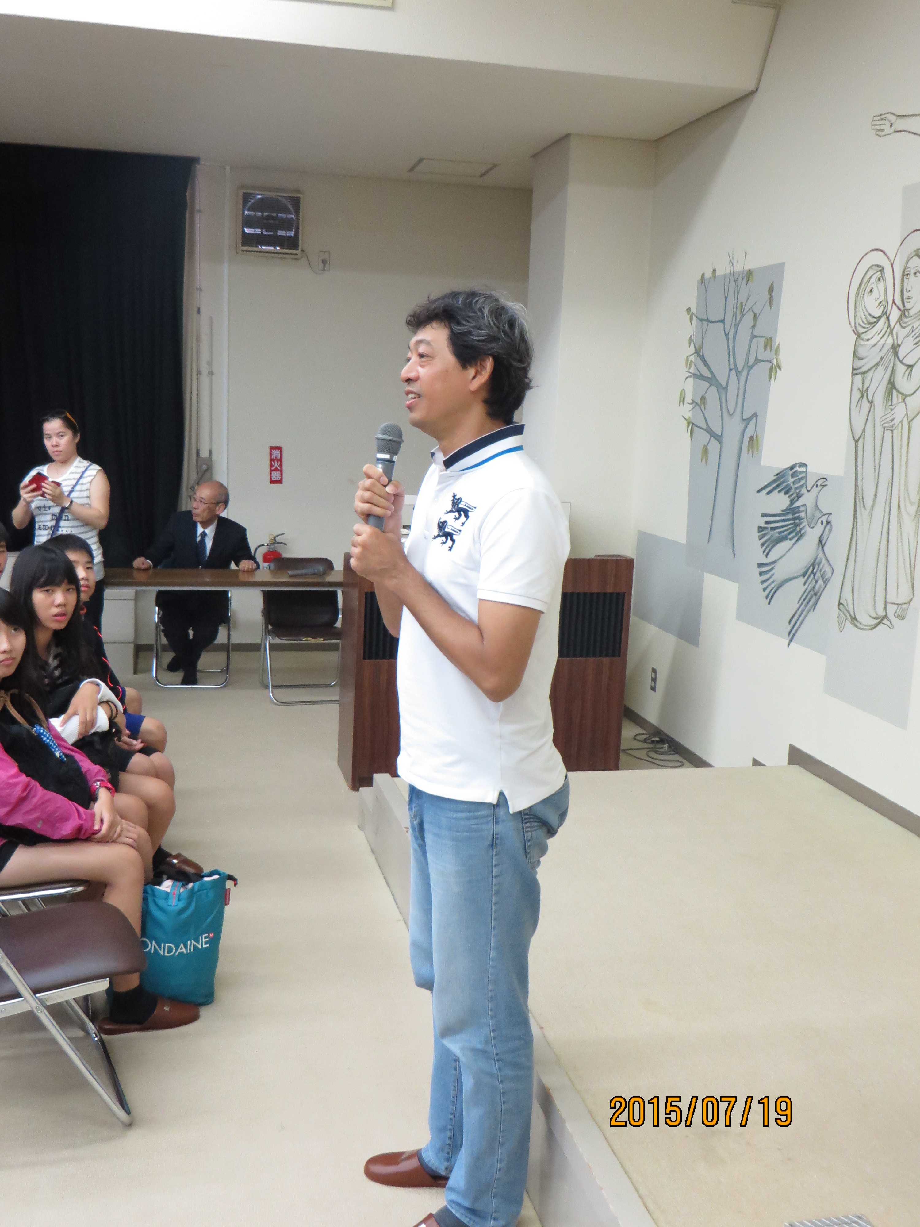 2015年7月19日。ホームステイの開始に伴い、中村校長よりご挨拶を頂きました。