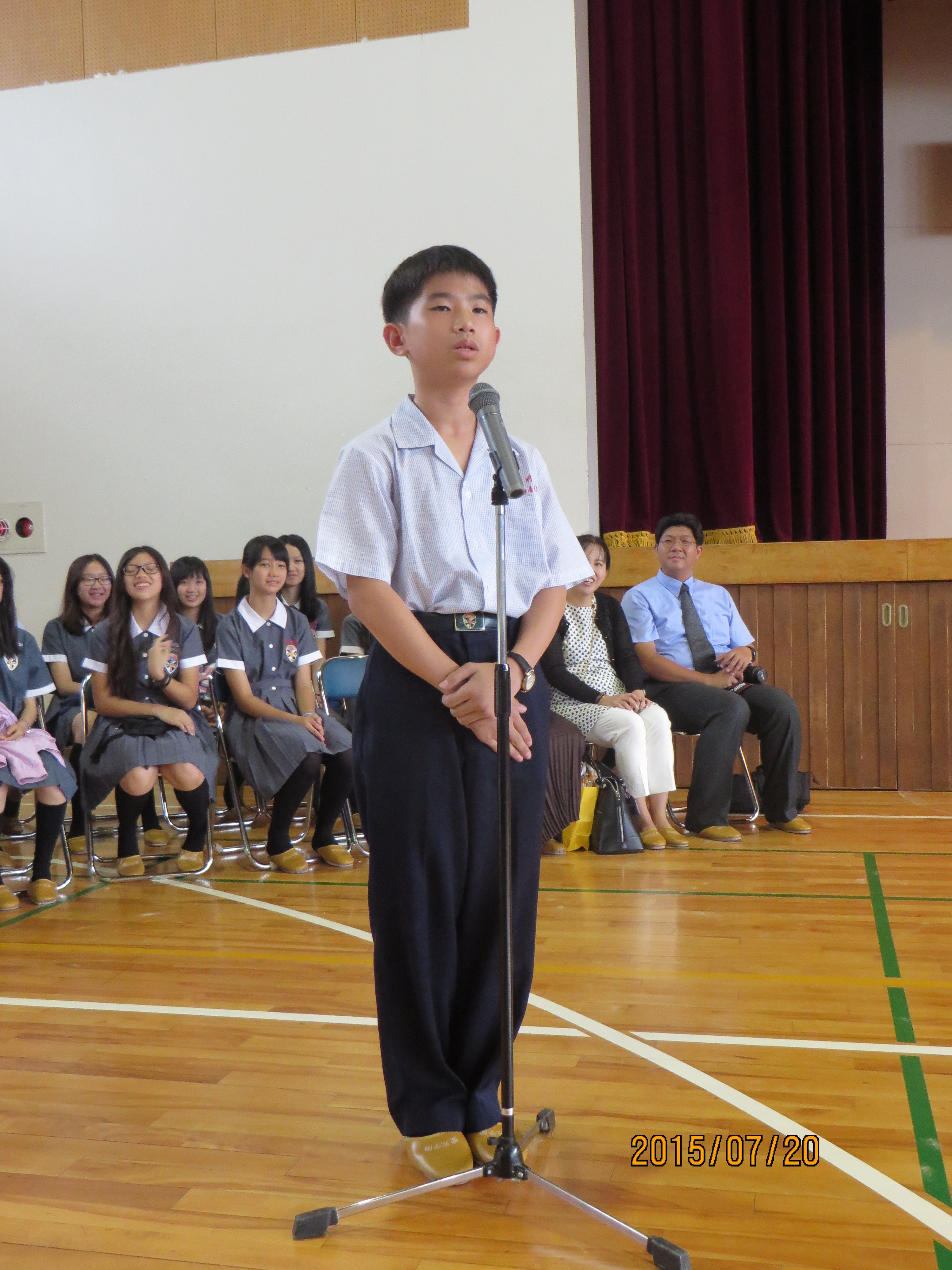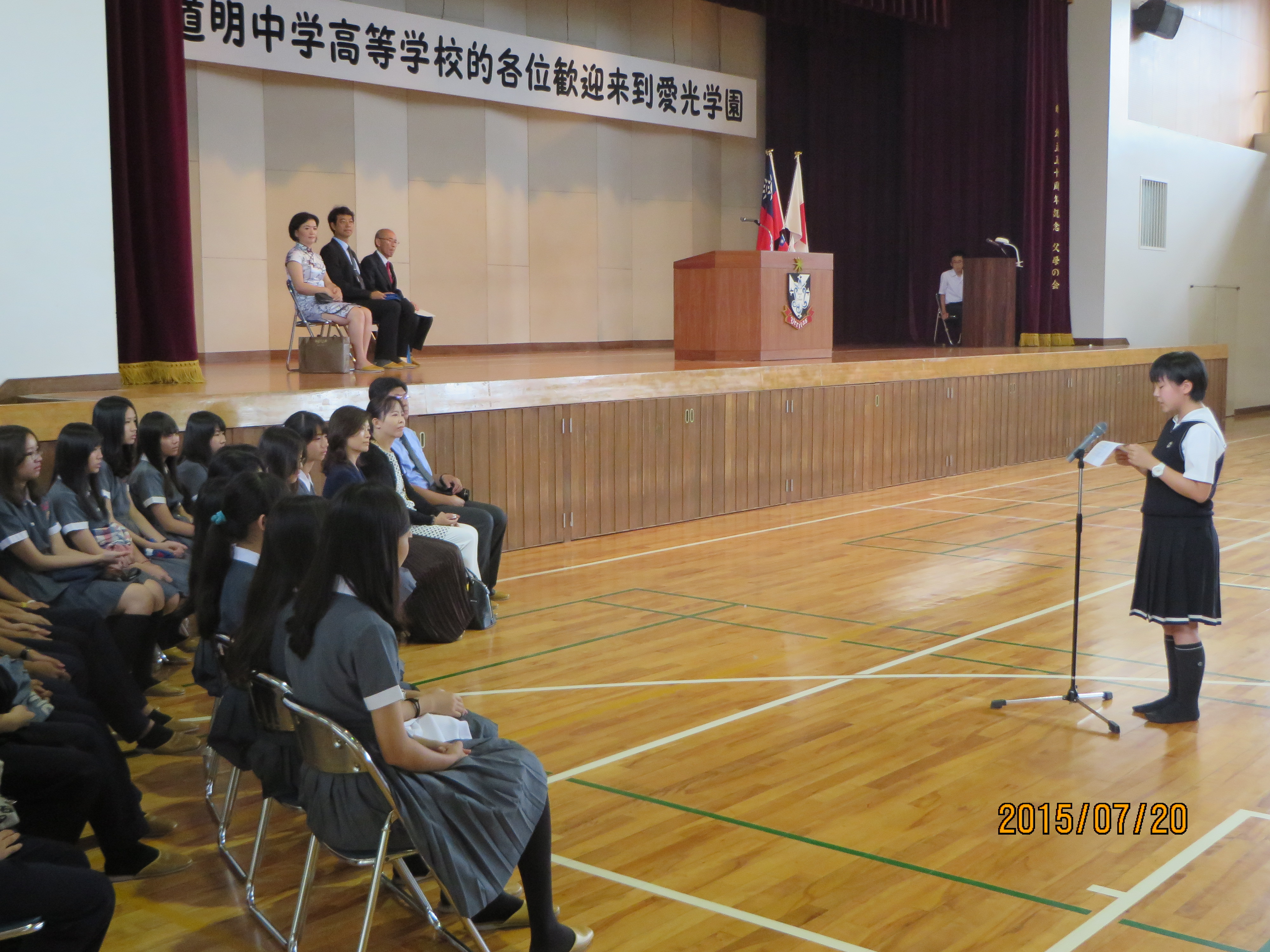 愛光生代表挨拶。高Ⅰ生と中2生が日本語と英語で挨拶しました。