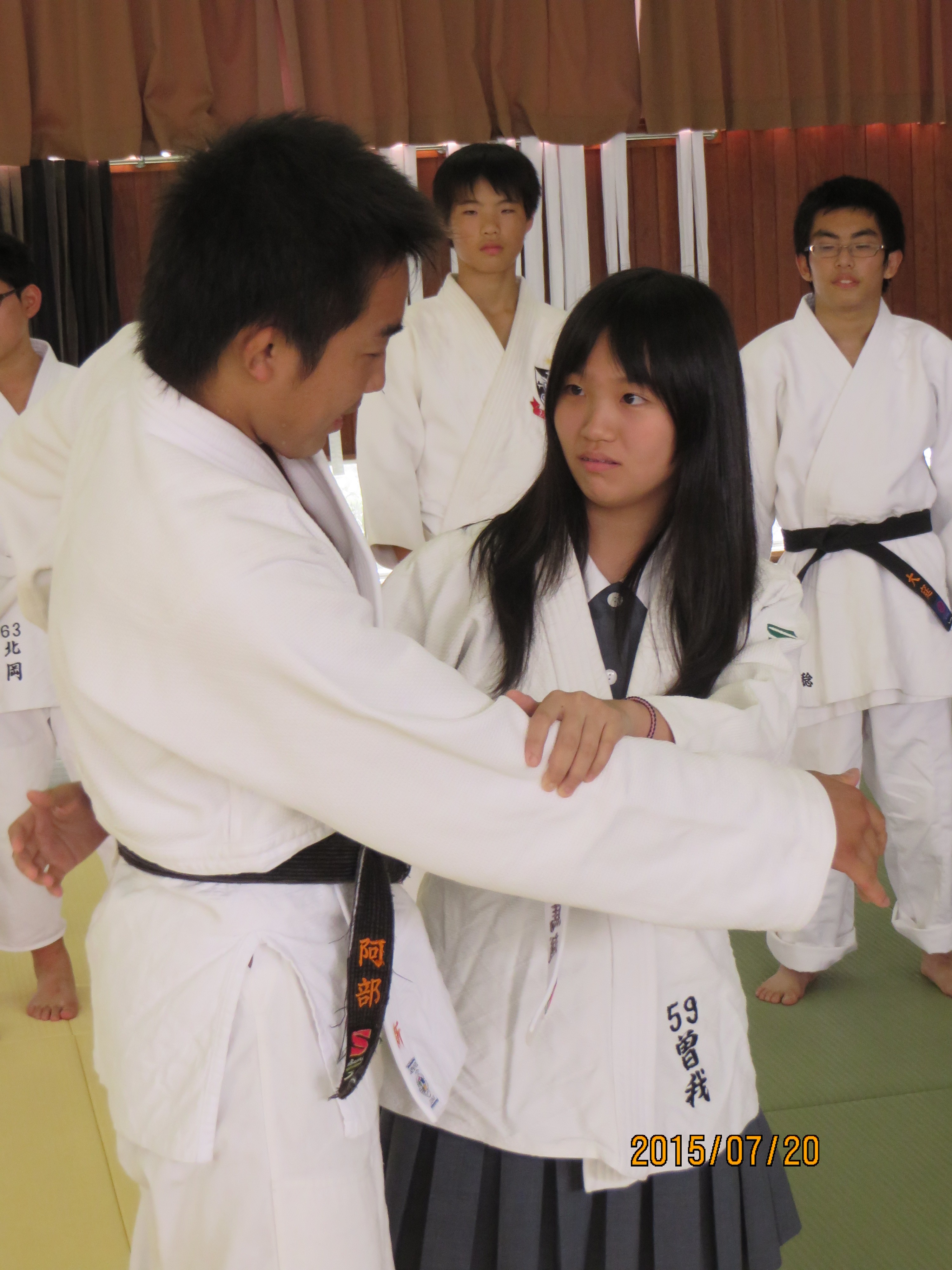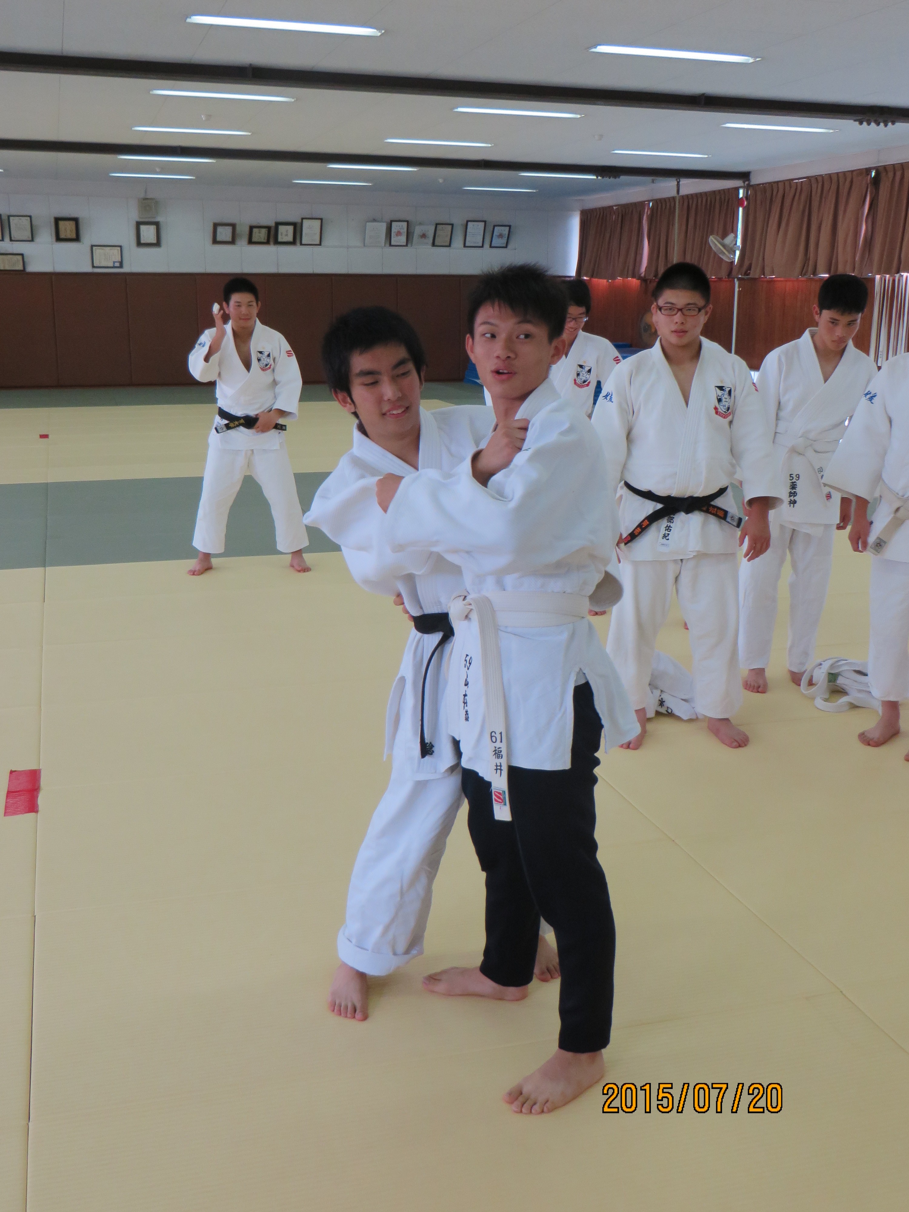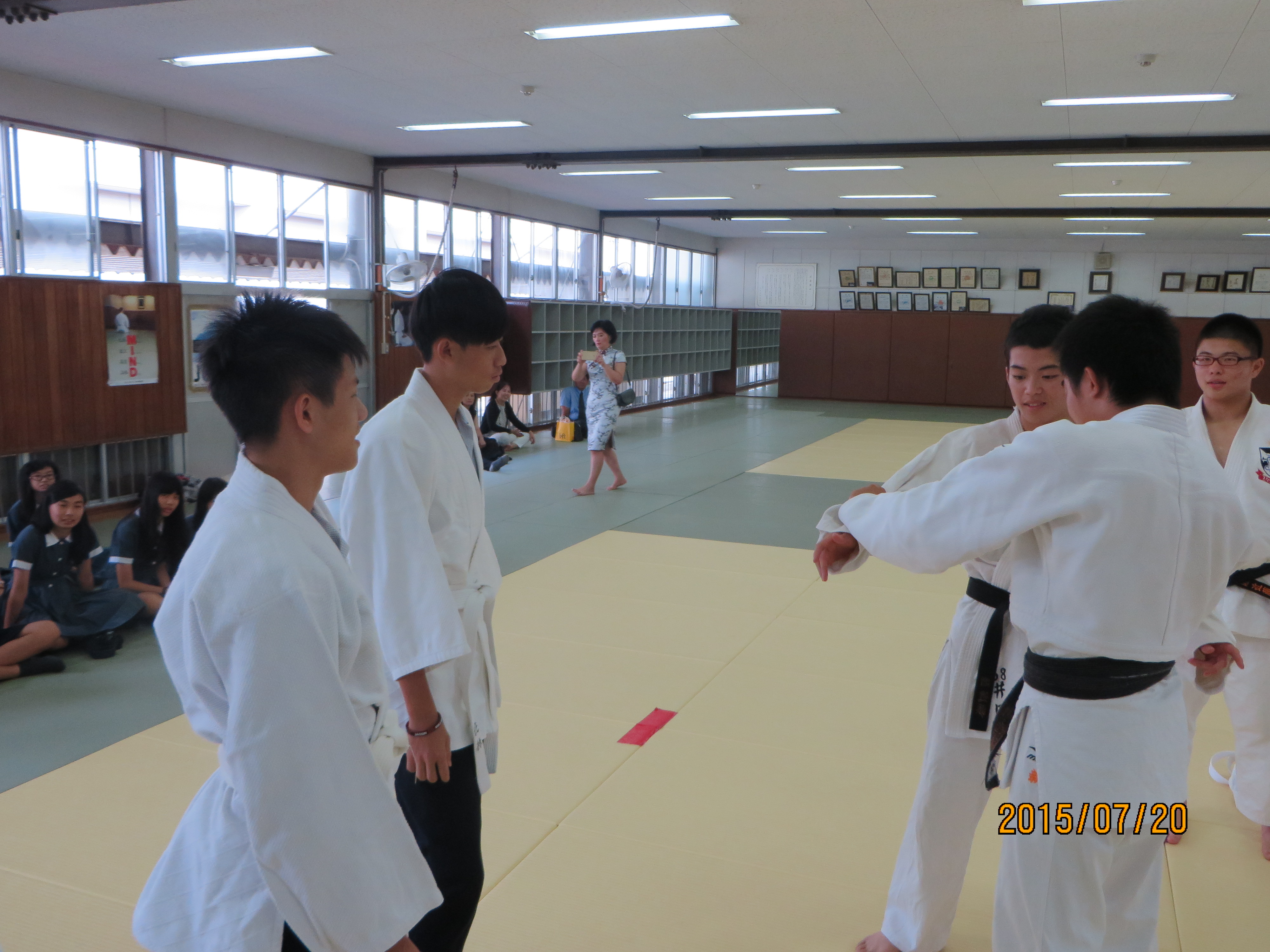 道明生は愛光の柔道部員から技の説明を受け、実際にやってみました。一本!